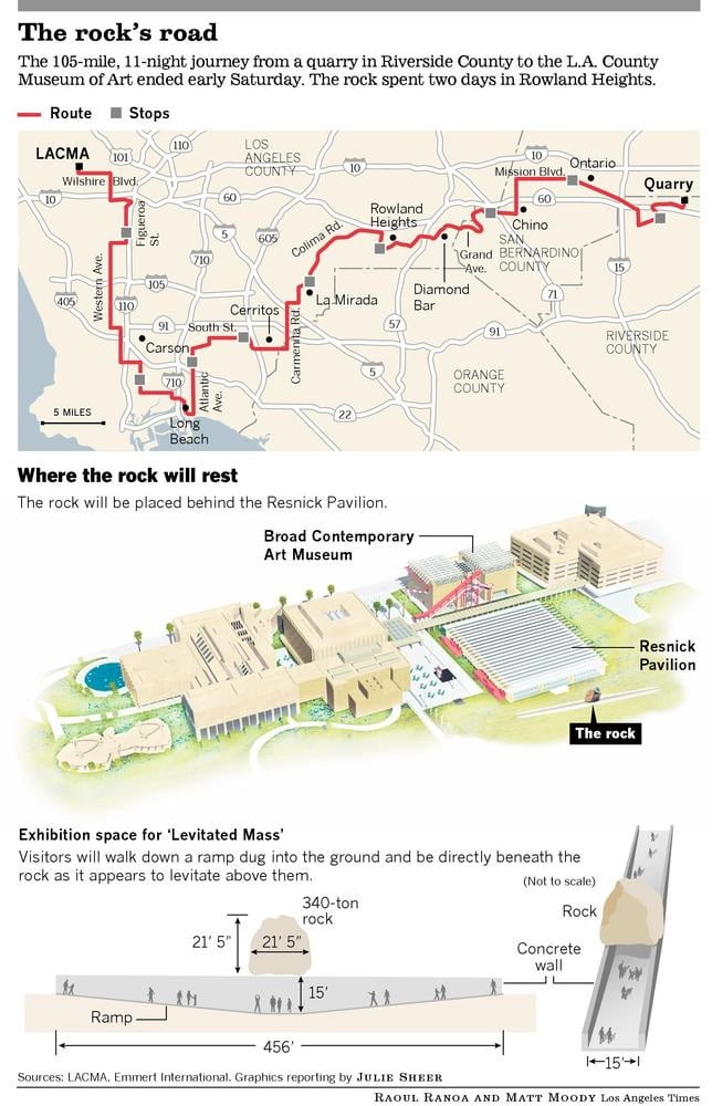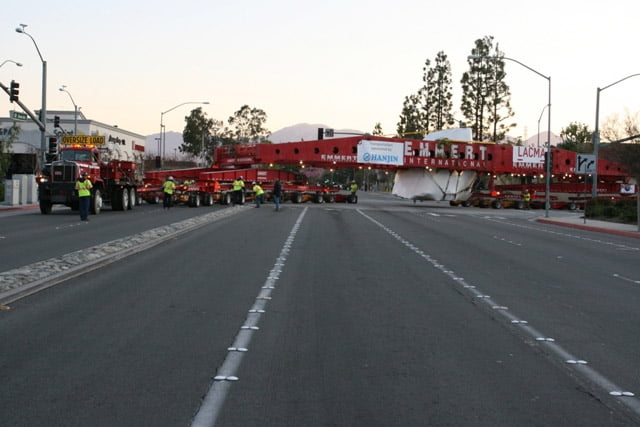 WCS Permits worked tirelessly for several years with several agencies, LACMA and the giant boulder boulder\’s carrier, Emmert, to transport it from Riverside to Los Angeles. It made its 105-mile journey amongst 11 nights of travel. WCS\’ sister company, Right of Way Inc. provided all the traffic and pedestrian control along the route, too. \”Levitated Mass\” exhibit opened Sunday, June 24 at LACMA.